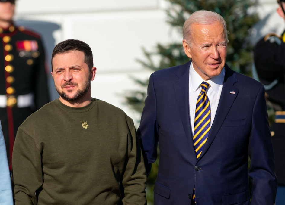 2022年12月21日,美國總統拜登(右)在華盛頓白宮會見烏克蘭總統澤連斯基。新華社圖片