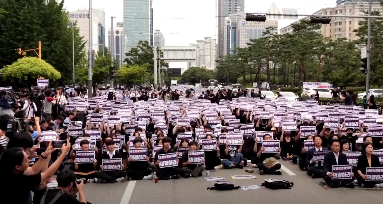 韓民眾集會悼念離世教師。視頻截圖 疑因遭到學生家長惡意投訴,首爾一名24歲的小學教師今年7月不堪重壓,在校內自殺。事件引發韓國社會強烈震動。此後,教師們爭取維權的呼聲越來越高。 目前還不清楚4日罷課的教師人數,但當地媒體稱,由於教師表示不工作,預計全國許多學校將關閉。政府和學校董事會官員已努力避免學校課堂嚴重中斷,並承諾採取法律措施,更好地保護教育工作者。當局表示,教師擾亂課堂的集體行動是非法的,並警告要採取懲戒措施。(完) 【編輯:梅婉潼】