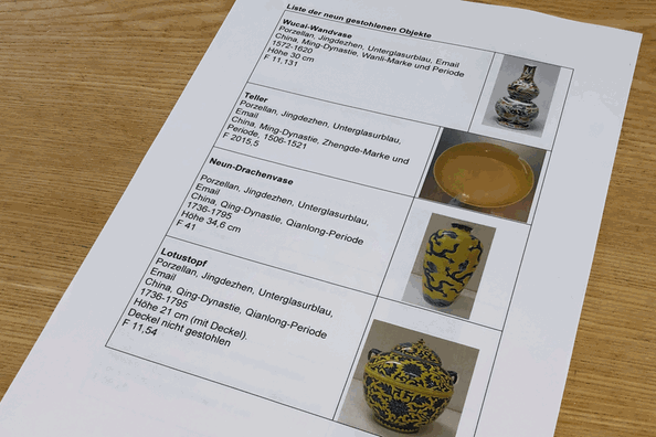 博物館公佈的失竊藝術品清單。圖自央視新聞 當地警方稱,盜賊破窗而入,隨後從陳列櫃中偷走了這些瓷器。據悉,失竊藏品包括花瓶、瓷盤和瓷罐等,製造時間從16世紀到19世紀不等。 警方目前正在搜查破案線索。 失竊的這家博物館建立已逾百年,藏有大量19世紀及以前的東亞瓷器、陶器和繪畫藝術品。科隆市表示,將對事發博物館的安全進行審查。(完) 【編輯:梅婉潼】
