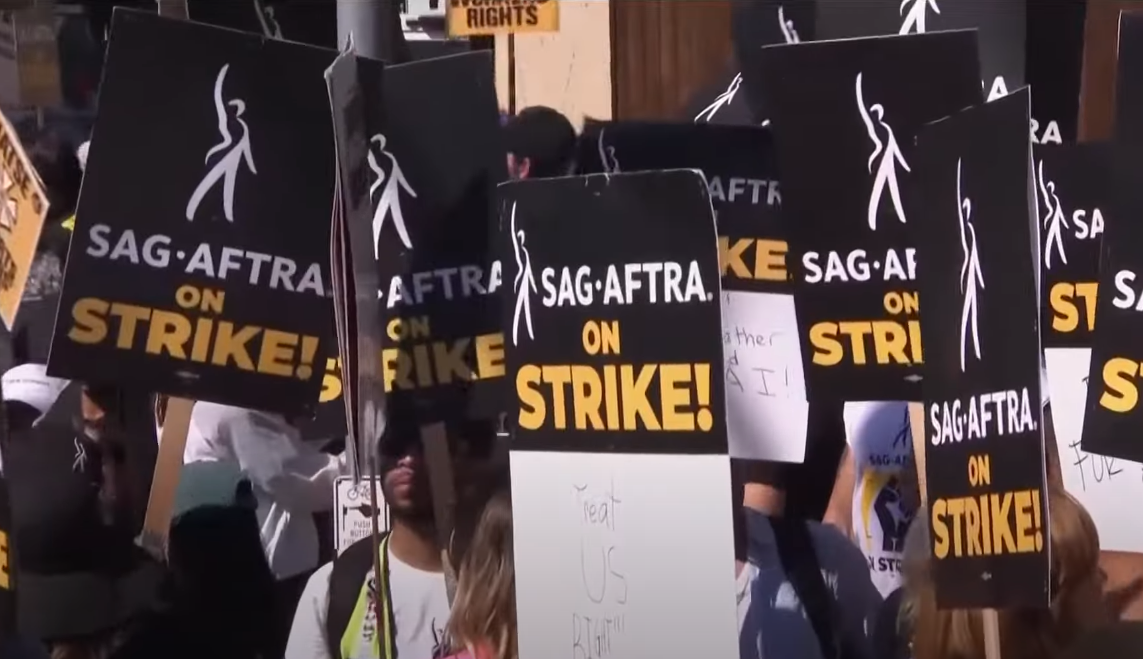 美國演員編劇在好萊塢游行集會。視頻截圖 美國影視演員協會成員當天8時在美國流媒體巨頭奈飛公司所在地集合,9時遊行前往美國老牌影業公司派拉蒙,隨後在派拉蒙影業公司外舉行集會。 從該協會在社交媒體發出的現場照片和視頻可以看到,當天很多人手舉“罷工”標語牌走上街頭,高喊“公平薪酬”等口號。 今年5月,代表超過1.1萬名編劇的美國編劇協會舉行罷工,要求各大影視公司提高編劇薪資和流媒體平台剩餘收益分配;7月,擁有約16萬名會員的美國影視演員協會加入罷工。美國媒體稱,這是43年來好萊塢影視演員第一次大罷工,也是63年來演員和編劇首次聯合罷工。截至目前,罷工方與好萊塢主要製片公司間的談判仍僵持不下。 持續的聯合大罷工直接導致美國影視業陷入停擺,不少劇集製作被迫推遲。據悉,本次大罷工除了由演員、編劇與資方的薪資矛盾導致外,AI(人工智能)可能取代演員和編劇的威脅也是主要原因。(完) 【編輯:梅婉潼】