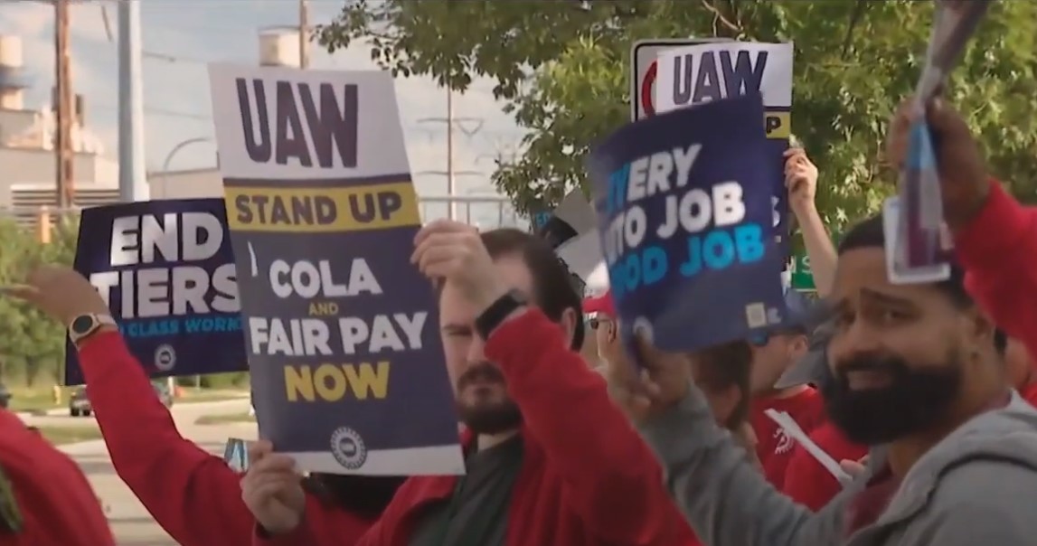 美國三大車企工人開始罷工。視頻截圖 據中國新聞網引述外媒報道,美國汽車工人聯合會主席費恩(Shawn Fain)表示:“這是我們歷史上首次同時針對(汽車)三巨頭展開罷工。”費恩還稱,工會目前將暫時推遲其它代價更高的罷工形式,但如果不能就新合同達成一致,“所有選擇都是開放的”。 路透社報道稱,美國汽車工人聯合會與三大汽車巨頭高管之間的勞資矛盾已持續了數周。工會要求在燃油卡車產生的利潤中獲得更大份額,并在汽車製造商轉向電動汽車時加強就業保障。 報道指出,此次三家工廠的罷工共涉及12700名工人,罷工地點分別是福特位於密歇根州韋恩的裝配廠、通用汽車位於密蘇里州溫茨維爾的裝配廠和斯泰蘭蒂斯位於俄亥俄州托萊多的Jeep品牌裝配廠。這幾家工廠對三大汽車巨頭的汽車生產至關重要。 美聯社分析稱,如果罷工持續很長時間,經銷商可能會面臨車輛短缺的情況,價格也可能出現上漲。罷工還可能影響2024年美國總統選舉,因為拜登自稱其“是美國歷史上對工會最友好的總統之一”,而此次罷工將對他形成考驗。 【編輯:梅婉潼】
