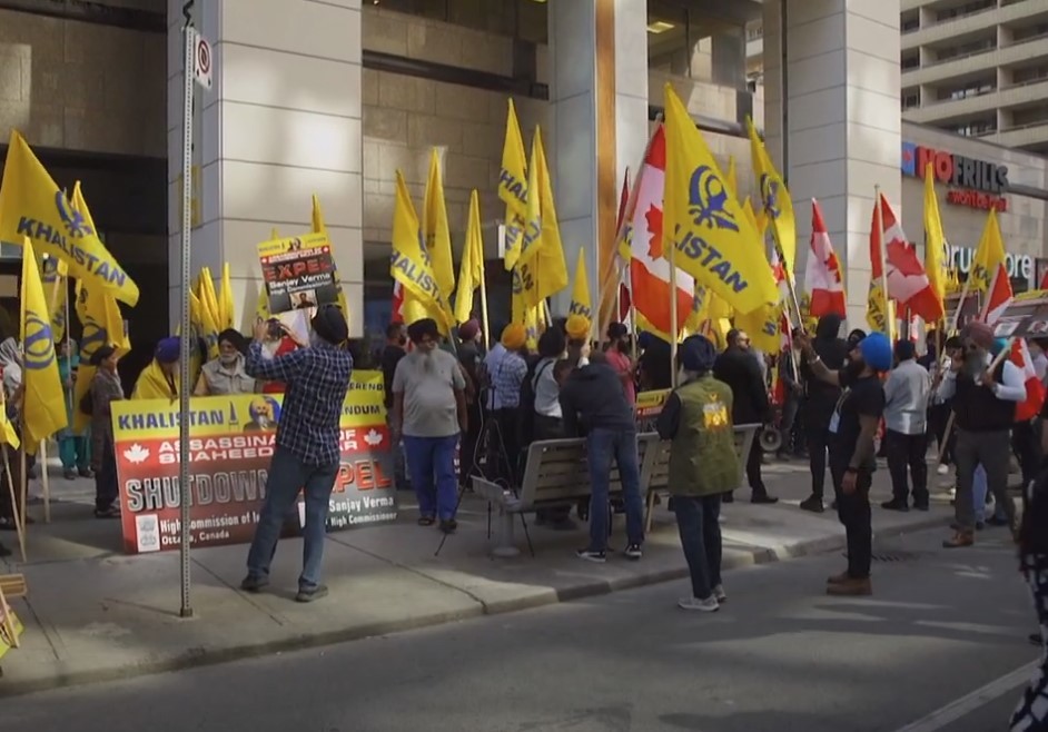 加拿大錫克教徒在印度外交使館外舉行示威活動。視頻截圖 加拿大和印度關係緊張,源於今年6月加拿大籍錫克教領袖尼賈爾在溫哥華附近遭人槍殺。加拿大總理特魯多18日指控印度政府幕後策劃此事,遇害案有關聯是基於“五眼聯盟”共享的情報。印度駁斥有關指控荒謬。兩國因此關係緊張,並互相驅逐外交官。 25日,在加拿大多倫多約100名示威者焚燒了一面印度國旗,並用鞋子踩踏印度總理莫迪的紙板模型;約200名示威者也聚集在溫哥華印度領事館外示威;在渥太華,約100人聚集在首都的印度駐加拿大使館外,手持寫著“卡利斯坦”的黃色旗幟示威。 尼賈爾上世紀90年代從印度移民至加拿大。他主張印度部分地區獨立,2020年7月被印度政府列為恐怖分子,今年6月18日在加拿大不列顛哥倫比亞省薩里縣一處錫克教文化中心外遭槍殺。 1980年代,錫克教領袖賈奈爾·辛格·賓德蘭瓦勒領導一個名為卡利斯坦運動的分離主義組織,該組織目的是在旁遮普邦建立名為“卡利斯坦”的獨立國家。 錫克教是一神論信仰,15世紀末在印度旁遮普地區創立,這片土地橫跨今天的印度和巴基斯坦。印度有2300萬名錫克教徒,約佔總人口的1.7%;海外300萬名錫克教徒當中,約77萬人在加拿大生活。(完) 【編輯:梅婉潼】