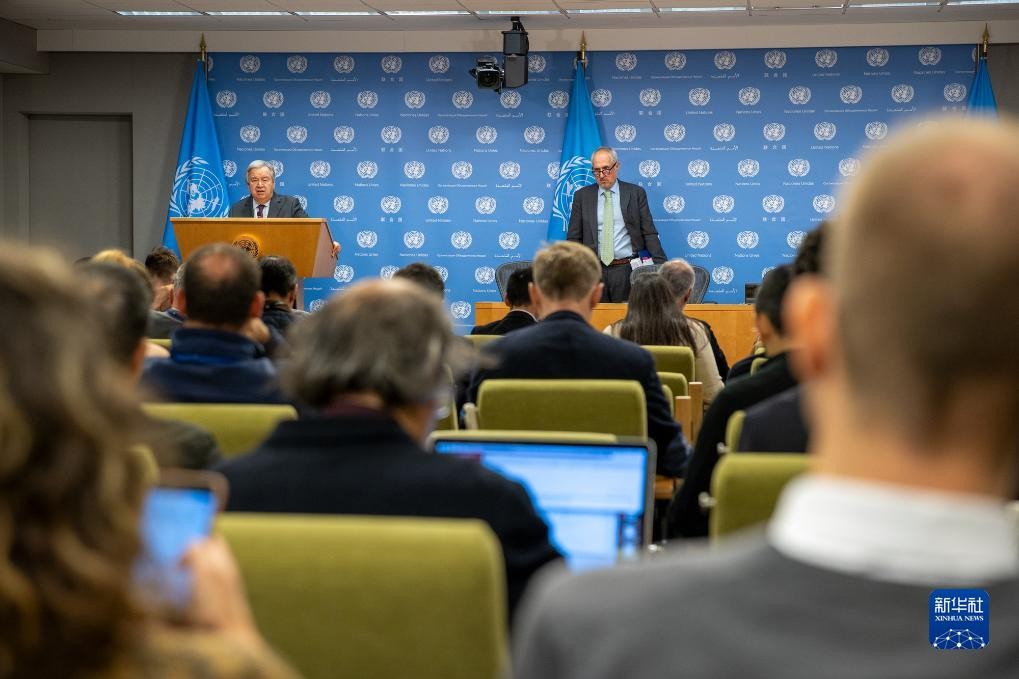 10月9日,在位於紐約的聯合國總部,聯合國秘書長古特雷斯(後左)在記者會上就巴以局勢發表談話。新華社發(聯合國供圖/保羅·菲爾蓋拉斯攝) 古特雷斯當天在記者會上說,最近的巴以暴力衝突並非憑空而降,而是源於56年佔領和政治解決無望所導致的長期衝突。以色列必須能够看到其合法的安全需求得到滿足,巴勒斯坦人必須能够看到實現其獨立建國的清晰前景。只有通過滿足雙方願景的談判達成和平,才能為巴以乃至更廣大的中東地區人民帶來長期穩定。 古特雷斯對以色列宣布對加沙地帶進行“全面封鎖”深感憂慮。他說,加沙地帶急需醫療設備、食品、燃料等人道物資以及人道救援人員的准入,各方應允許聯合國對加沙地帶無助的巴勒斯坦人進行緊急人道救助,國際社會應為此提供支持。 巴勒斯坦與以色列自7日起爆發新一輪武裝衝突。古特雷斯9日的談話中提到,衝突已造成800多名以色列人死亡、2500多名以色列人受傷,加沙有包括婦女和兒童在內的500多名巴勒斯坦人喪生、3000多名巴勒斯坦人受傷。目前共有約13.7萬人在聯合國近東巴勒斯坦難民救濟和工程處的設施中避難,而且人數還在增加。 此外,以色列北部的黎以邊境局勢也愈加緊張。在8日黎巴嫩真主黨與以色列國防軍相互炮擊後,9日,有武裝人員越過黎以邊界線,與以軍發生交火,數名武裝人員被打死。巴勒斯坦伊斯蘭聖戰組織(傑哈德)下屬的聖城旅宣布對事件負責。之後以色列炮擊了黎巴嫩南部邊境地區。(完) 【編輯:梅婉潼】