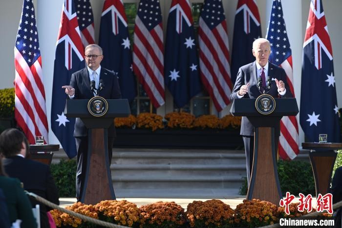 香港新聞網10月26日電 美國總統拜登25日與來訪的澳大利亞總理阿爾巴尼斯在白宮舉行會晤。兩國領導人在會後發佈聯合聲明,宣佈以建立“創新聯盟”為引領,在多個領域加強美澳雙邊關係。