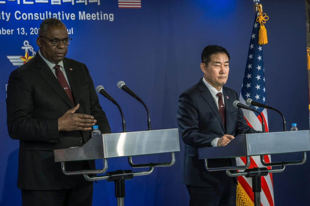 美國國防部長奧斯汀和韓國國防部長官申源湜。圖自美國國防部官網 韓國國防部長官申源湜和美國國防部長奧斯汀當天在首爾舉行的第55次韓美安保會議(SCM)上,正式簽署了上述經修改後的戰略文件。 今年4月,韓國總統尹錫悅訪美後,韓美兩國發表《華盛頓宣言》,其中就“韓美共同執行延伸威懾”達成一致。韓聯社11月13日引述韓國政府消息人士的話稱,韓美將可共同策劃及執行韓為美核作戰提供常規戰力支援等事宜。 韓美最初於2013年10月在首爾舉行的韓美安保會議上簽署“定制型威懾戰略”文件。 《中國國防報》近日引述外媒觀點稱,韓國最近的防務外交都是在“圍繞美國打轉”。無論是開闢軍工產業市場,還是發展多邊軍事合作,亦或人工智能軍事應用等計劃,都是隨美起舞、亦步亦趨。這也暴露了尹錫悅政府期望藉助美國乃至西方政治外交和防務影響力,提升自身國際地位,躋身所謂“強國俱樂部”的圖謀。(完) 【編輯:梅婉潼】