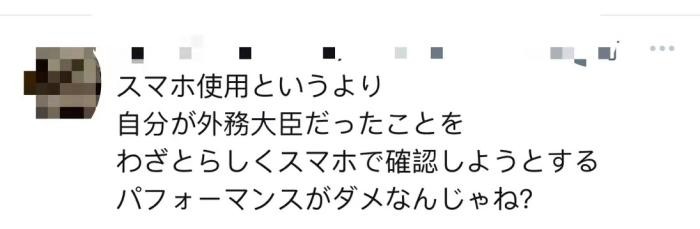 社交平台網友評論截圖。 還有網友表示,“比起使用手機,自己(2019年3月)擔任外相還要特意去查的這種行為才不合理吧?”
