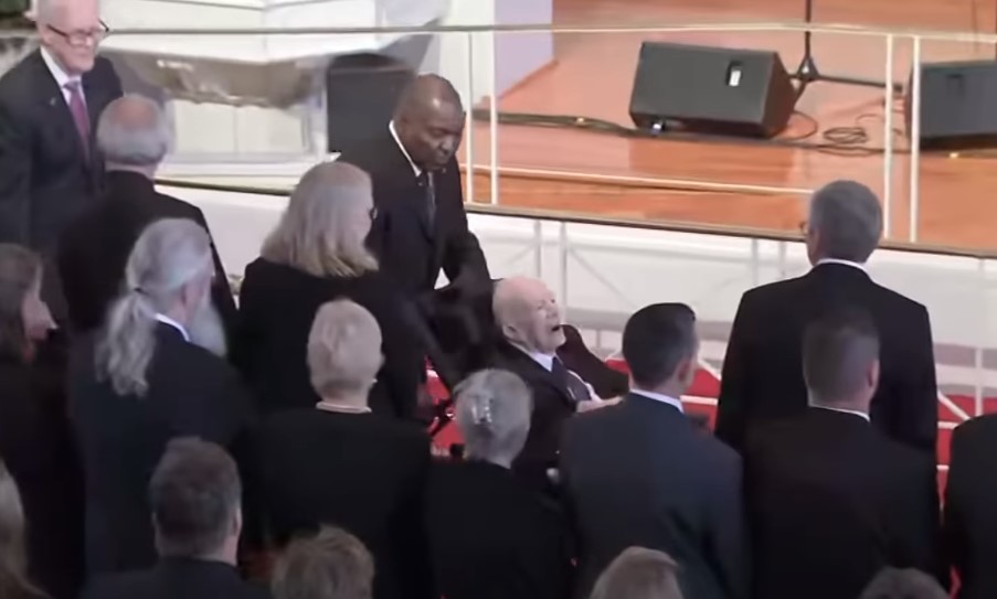 美國前總統吉米·卡特坐著輪椅參加妻子羅薩琳·卡特的追悼會。視頻截圖 報道稱,卡特身穿黑西裝,繫著黑領帶,坐在輪椅上進入格倫紀念聯合衛理公會,腿上蓋著一件綉有妻子臉龐的毛毯。卡特在別人的幫助下坐到前排,靠近他妻子覆蓋著鮮花的棺木,子女坐在他身邊。 羅薩琳本月19日去世,享年96歲。 卡特夫妻77年的婚姻歷程是一段佳話。卡特1977年至1981年擔任美國總統期間,作為第一夫人的羅薩琳致力於人道主義事業。卡特卸任後,這對夫婦繼續因人道主義工作而享有聲望。卡特總統任內,中美兩國正式建立外交關係。 卡特在追悼會上未對弔唁者發表講話。他的兒子詹姆斯·厄爾·卡特三世致悼詞,稱羅薩琳是將家人維繫在一起的“凝聚力”。 卡特目前面臨包括癌症在內的多種健康問題,今年2月決定停止醫療干預,在他喬治亞州普萊恩斯的家裡接受臨終關懷。羅薩琳被診斷為患有老年痴呆,在離世前幾天開始跟他一起接受臨終關懷。(完) 【編輯:梅婉潼】
