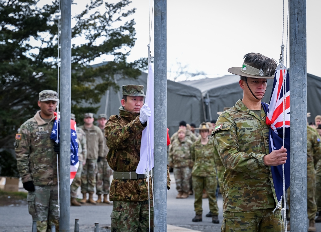 澳大利亞、日本和美國的國旗在日本北海道東千歲營地昇起。圖自澳大利亞國防部官方社交平台 NHK稱,日本陸上自衛隊和美國陸軍於1982年開始實施代號為“山櫻”的大規模兵棋推演,模擬日本受到攻擊的情況。本次演習由日本自衛隊和美軍、澳軍共同實施,這是澳大利亞軍隊首次參加該演習。 據報道,在4日的啟動儀式上,日本“陸上總隊”司令官竹本龍司稱,“相信這將彰顯日美澳間聯繫之密切。”美國陸軍第一集團軍司令布蘭森則稱,“期待演習能夠推進美日部隊相互協作能力,感謝澳軍參加。” 報道稱,本次演習模擬日本受到攻擊的情況,確認了美國和澳大利亞向日本派兵與自衛隊共同作戰時的程序,屆時澳軍被納入美軍指揮系統。本次演習將持續至12月13日。 同一天,澳大利亞國防部表示,約有230名澳軍方官兵首度參與“山櫻”美日聯合軍演。 澳國防部表示,去年“山櫻”演習結束後,澳方收到邀請,將於今年首次參與“山櫻”演習,增強澳與日美的共同防禦能力。 澳國防部還表示,“山櫻”將有約230名澳大利亞軍人、1500名美國軍人和5300名日本自衛隊人員參加。(完) 【編輯:梅婉潼】