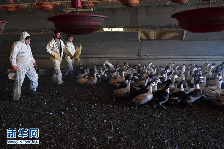 在法國西南部的貝洛克-聖克拉芒,家禽養殖場的工作人員准備將鴨子趕出鴨舍進行扑殺。圖自新華社 綜合報道,上周,法國西北部布列塔尼地區的一個火雞養殖場發現了高致病性禽流感病例,這是法國今年秋天第一起養殖場禽流感病例。當時,法國政府將國家禽流感警戒級別從“輕微級”提升到了“中級”。 過去幾周,這一高致病性病毒在歐洲、美洲、亞洲都有出現,包括德國、荷蘭、美國和日本等。 12月1日,德國當局表示,東部一個農場爆發了高致病性H5N1禽流感,約有1.15萬隻火雞被撲殺。荷蘭政府上月12日表示,該國中部一個農場檢測出高致病性禽流感毒株,為防疫情擴散,對這個農場內約6.5萬隻雞進行撲殺。 上月末,同樣被禽流感折磨的美國加州養殖戶們苦不堪言。有蛋農表示,他們不得不對8萬多隻雞實施“安樂死”,而他鄰居的養鴨場則蒙受了17萬隻鴨子的損失。 11月25日,日本農業部官員稱在該國南部的一個家禽養殖場發現了首例H5型禽流感病例。據稱,當地政府在涉事農場撲殺了約4萬隻家禽。 世界衛生組織曾說,盡管人類感染禽流感病毒的風險依然較低,並且從未有過人傳人病例,但各國必須對可能發生的變化做好準備。(完) 【編輯:梅婉潼】