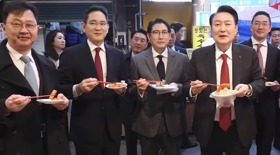 當地時間6日,韓國總統尹錫悅訪問釜山國際市場,與韓國企業家一起品嚐炒年糕。視頻截圖 環球網引述《朝鮮日報》報道稱,尹錫悅與三星電子會長李在镕、SK集團首席副會長崔再源、LG集團會長具光謨等人一同首次訪問了釜山國際市場。報道視頻顯示,尹錫悅當天在市場里對著圍觀的韓國民眾說,“我會把釜山發展得比申辦世博會時更好,我一定會遵守承諾,請大家不要擔心!”說完後,尹錫悅與企業家們一起舉著盤子享用了炒年糕、魚餅湯等美食。報道還說,三星電子會長李在镕站到前面,不好意思地對老闆說:“給我點魚餅湯……”嚐到熱湯的李在镕似乎很滿意,發出感嘆的樣子。 據《朝鮮日報》報道,李在镕當天的一張“搞笑照片”也在網上瘋傳。照片中,李在镕將右手食指貼在嘴上,對著拍攝自己的鏡頭擺出類似“噓”的動作,同時面帶燦爛的笑容。網友們看到此景表示,“對於總是一臉嚴肅的李在镕而言是難得一見的表情”“能讓財閥總裁做出那種表情,好奇究竟發生了什麼”。 另外,一些網友也對尹錫悅帶領韓企業家在當地小吃店“吃播”表示疑惑,“申博失敗後,尹錫悅是要帶著企業總裁們進軍炒年糕吃播嗎?”還有網友稱,“尹錫悅政府釜山申辦世博會失敗整出這一招,這些企業家有什麼罪啊?” 此前,國際展覽局11月28日發佈公告,宣布沙特首都利雅得贏得2030年世界博覽會主辦權。公告顯示,在首輪投票中,利雅得一舉拿下119票,遠超競爭對手韓國釜山的29票和意大利首都羅馬的17票。韓國總統尹錫悅29日向全體國民道歉。而韓國僅得29票的結果,更是引發了輿論對政府外交的批評潮。尹錫悅稱,“讓包括釜山市民在內的全體國民失望,我深表歉意。這都是我自己的不足(所致)。” 而在釜山“申博”失敗後,越來越多的韓國媒體、專家和民眾在“複盤”的過程中,將矛頭指向了現政府的“價值觀外交”,認為“只要和美日搞好關係就萬事大吉”的陣營外交路線正讓韓國在國際社會上日益孤立,這種“以西方國家為中心”的外交正呈現出明顯的局限性。韓國國立外交院前院長金俊亨近日強調說,“韓國沒有讀懂世界,釜山‘申博’失敗是一場價值觀錯誤、技巧拙劣的‘外交災難’”。 【編輯:梅婉潼】