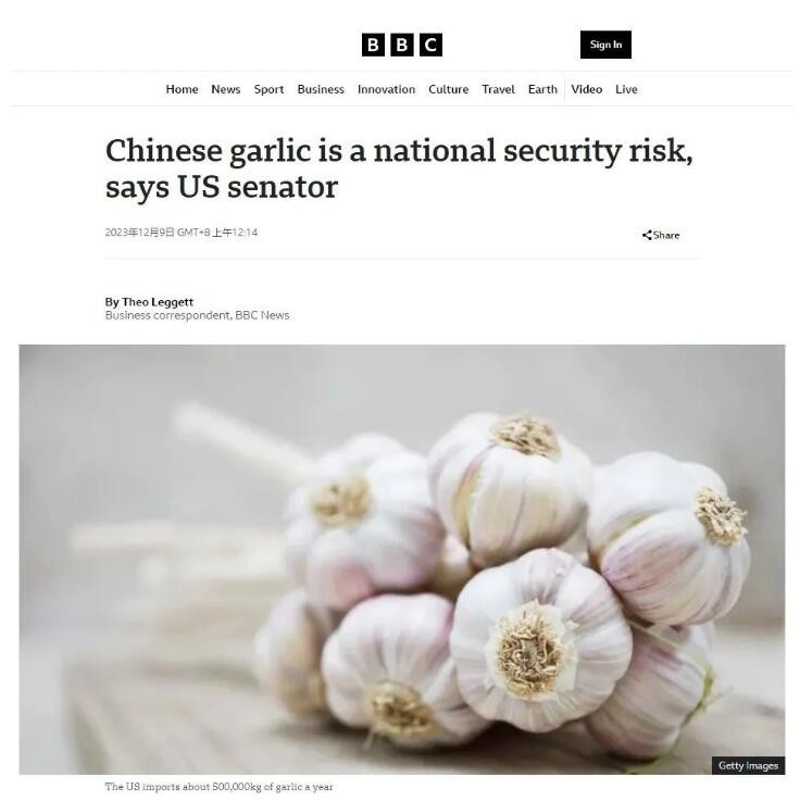 美參議員指控中國大蒜構成“重大國安風險”,BBC也看不下去了分享到: