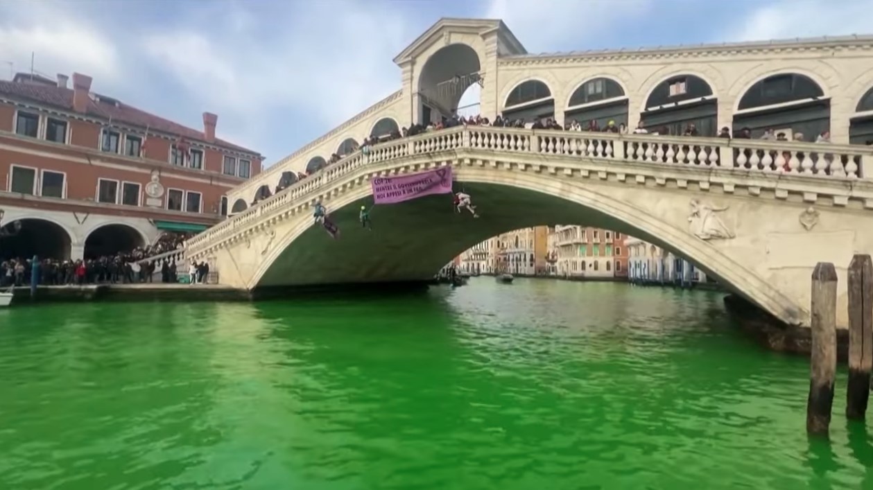 當地時間9日,意大利環保活動人士用染料將威尼斯大運河染成了綠色。視頻截圖 根據社交媒體上的照片,大運河水面上綠油油的熒光斑塊清晰可見。期間運河水上交通需要暫停。 其他意大利城市中的小段河流和運河,從北部的都靈波河到南部的羅馬台伯河,也因抗議活動變成了綠色。 報道提到,雖然該組織主張使用的是無害染料,“幾個小時後,這些水域就會恢復到原來的樣子”。但威尼斯市市長路易吉·布魯尼亞羅譴責這些人是“生態破壞者”,並呼籲意大利當局對他們進行懲罰。布魯尼亞羅表示,出於安全考慮,必須對運河的水進行檢查。(完) 【編輯:梅婉潼】