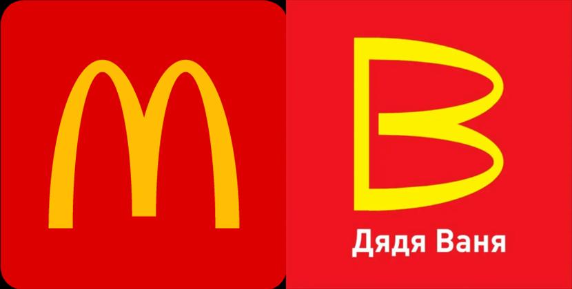 “麥當勞”與“萬尼亞舅舅”的商標對比(《萬尼亞舅舅》是俄國著名作家契訶夫的作品名) 而那些被出售的業務,更名後也仍在繼續運營,如星巴克在俄羅斯叫作星星咖啡,其標誌性的美人魚也變成了俄羅斯天鵝公主。