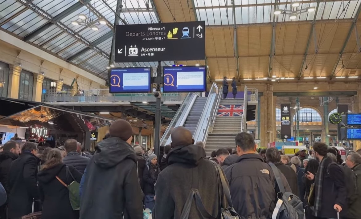 由於英法海底隧道工人罷工,大量旅客滯留車站。視頻截圖 這次罷工源於英法海底隧道營運商的法國員工,不滿花紅只有1000歐元(約1100美元),少於要求的3000歐元(約3301美元),當日發動突襲式罷工,導致隧道一度關閉,除駛經隧道的歐洲之星列車,被迫暫停服務,最少有30班列車服務取消外,也影響貨運及汽車運載服務。由於臨近聖誕,英國和法國的車站都擠滿準備放假出遊的旅客,有旅客不滿隧道員工做法。 英法海底隧道營運商隨後於當日晚上表示,已與工人達成協議,貨運及汽車運載服務在21日晚陸續恢復,歐洲之星列車服務會也在22日回復正常。 根據法國一項2007年訂立的法例,運輸業僱員罷工,必須預早48小時通報,但英法海底隧道營運商,就不在法例涵蓋範圍。(完) 【編輯:梅婉潼】