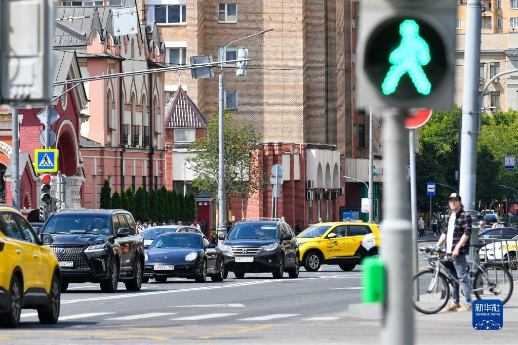 2023年6月26日,在俄羅斯首都莫斯科,車輛駛過市內道路。圖自新華社