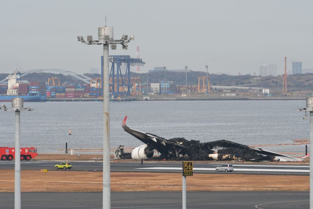 這是1月3日在日本東京羽田機場拍攝的飛機殘骸。圖自新華社 安全措施包括機場控制塔日後將不會告知機長起飛順序編號,航空公司要確保在起飛和降落過程中,全面監控駕駛艙情況;包括羽田及關西在內的7座主要機場,會安排專人監控停機坪的飛機位置,以防錯誤進入跑道,另外會成立由外部專家組成的委員會,加強航空安全管理,包括加強飛行員和空管人員的警報系統。 日本傳媒報道,海上保安廳的機長在事故發生前,曾獲空管人員告知排在起飛第一順位。國土交通省認為,“排第一”用語可能導致海上保安廳機長誤解是獲得起飛許可並已可以進入跑道。 本月2日傍晚,從札幌新千歲機場起飛的日航516航班客機在羽田機場降落時,在跑道上與海上保安廳飛機發生碰撞並起火。事故發生後,客機上所有人員被安全轉移,海上保安廳機上人員5人死亡、1人重傷。東京消防廳稱,客機大火在事故發生8個多小時後被撲滅。(完) 【編輯:梅婉潼】