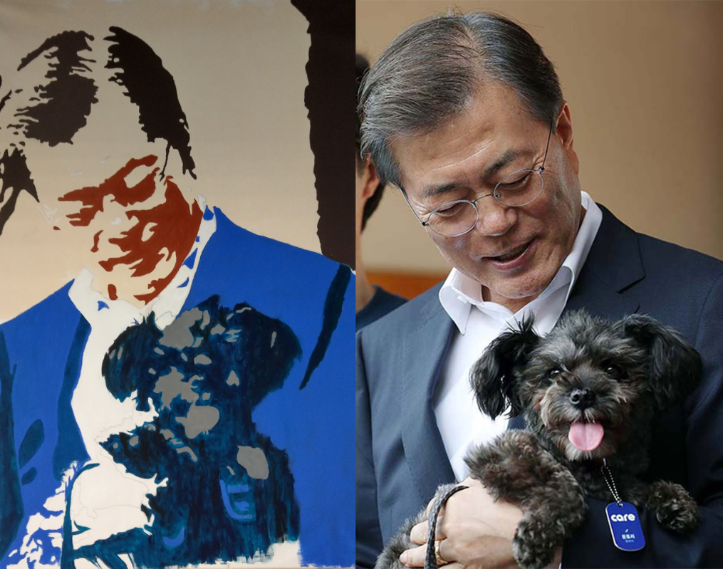 玄陵以文在寅領養狗狗為題創作巨型油畫 2018年,世界愛犬聯盟與CARE在首爾巿政廳共同舉辦禁食狗肉大會。期間,世界愛犬聯盟代表與韓國總統長女會面,遞交禁食犬貓請願信函,委託她將信函轉交文在寅總統。