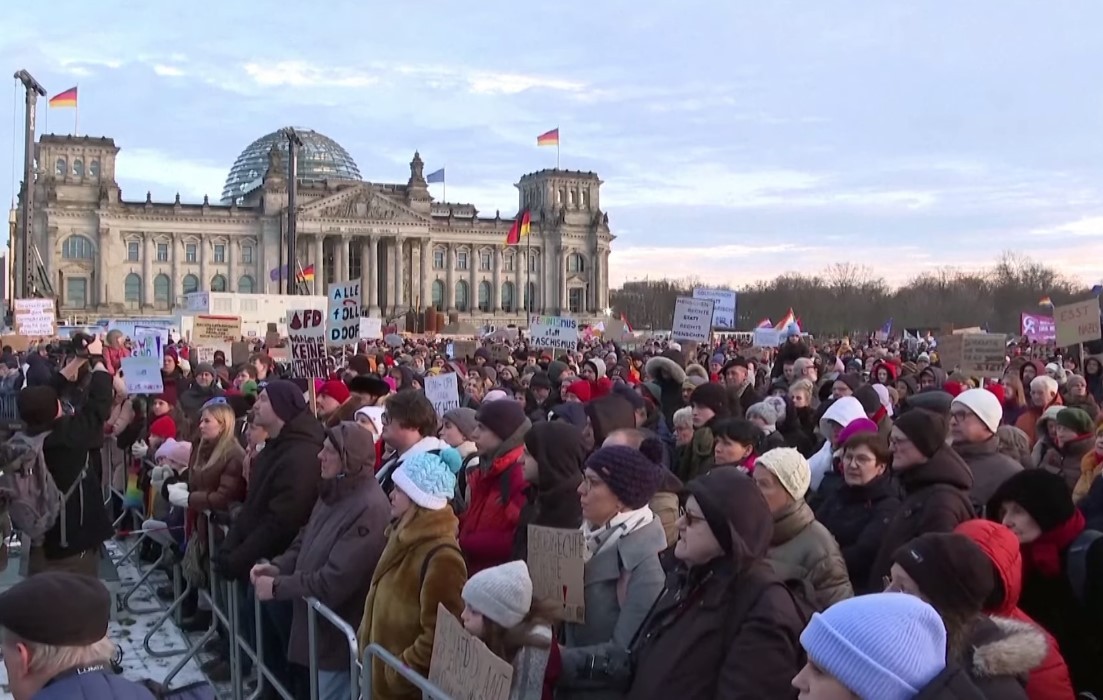 民眾聚集在德國國會大廈前參加反對極右翼政黨德國選擇黨的遊行活動。視頻截圖 綜合報道,最大的集會發生在德國金融首都法蘭克福,當地警方稱有3.5萬人參加。示威者們聚集在寫有“捍衛民主——法蘭克福反對德國選擇黨”的橫幅後面。 同樣數量的示威者聚集在漢諾威,一些人高舉“納粹滾蛋”的標語。據警方稱,多特蒙德約有3萬人上街遊行,哈雷有1.6萬人。愛爾福特、艾克斯拉沙佩勒、卡塞爾和許多其他小城鎮也舉行了示威遊行。 德國電視一台報道,20日共有約25萬人參加了抗議活動,譴責德國極右翼勢力。報道稱,21日將舉行其他集會,特別是在柏林和薩克森州的德累斯頓,那裡是反移民、反體制的德國選擇黨的大本營。政界人士、宗教代表和德國足球甲級聯賽的教練們呼籲民眾動員起來,反對這個目前在投票意向調查中名列首位的政黨。 報道提及,這場動員的起因是,1月10日,德國“正確調查”網站披露,極端分子於去年11月在柏林附近的波茨坦召開會議,討論了一項大規模驅逐外國人或外國血統人士的計劃。 德國內政部長南希·費澤在報刊上說,這次會議讓人聯想起“可怕的萬湖會議”。1942年,納粹在萬湖會議上策劃了滅絕歐洲猶太人的行動。(完) 【編輯:梅婉潼】