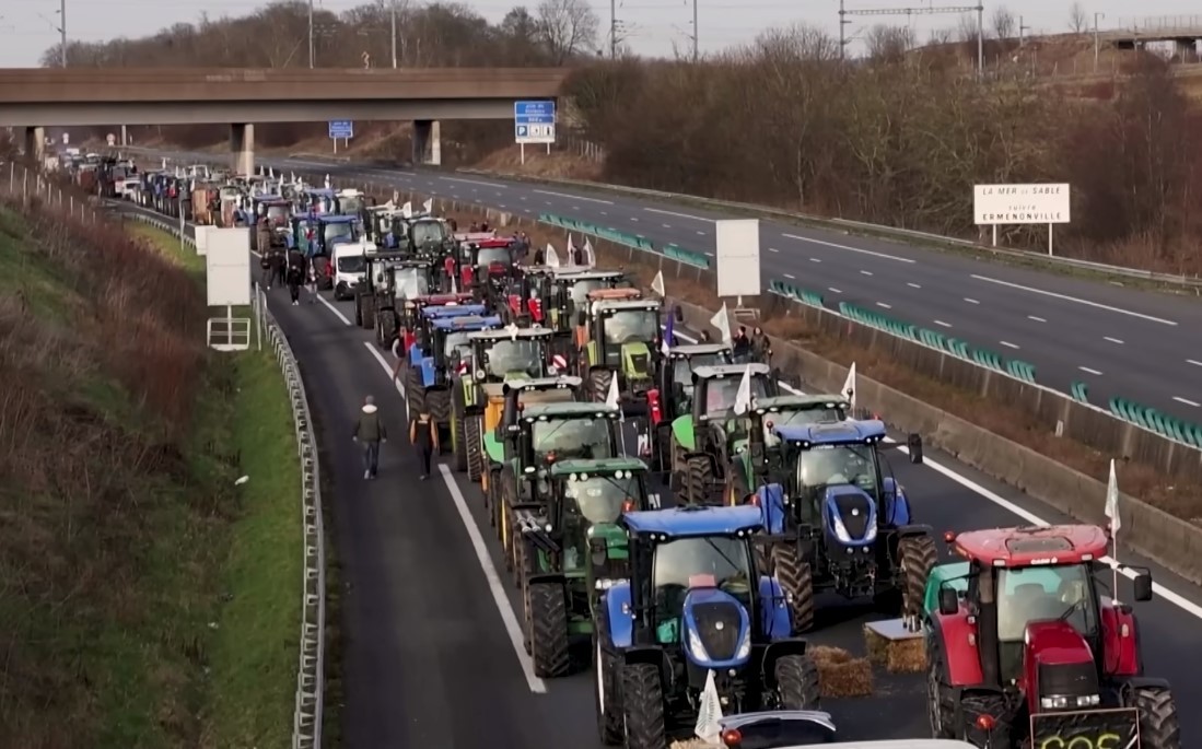 1月29日,法國農業生產者用拖拉機封堵通往巴黎的高速公路。視頻截圖 綜合報道,法國農業生產者全國工會聯合會和青年農民協會表示,巴黎周邊地區的成員於29日開始“無限期”圍困首都。他們稱,“通往首都的所有主要道路都將被農民佔領”,並宣布打算封鎖巴黎南部大型食品批發市場朗吉斯。 一名糧農表示,“我們正在距離巴黎一小時路程的沙特爾進行圍城,目標是向政府施加壓力。”對於被問及是否要封鎖巴黎時,他說:“這當然會發生。巴黎人會挨餓。我們的目標就是讓巴黎人挨餓。”另一名穀物種植者說:“如果幾天內沒有供應,也許巴黎人會意識到農業在我們國家的重要性。” 面對“圍攻”,法國內政部長達爾馬寧宣布動員1.5萬名執法人員,在巴黎郊區部署憲兵裝甲車,以阻止拖拉機進入巴黎市區和其他大城市。他還說,總統馬克龍已對安全行動作出指示,確保戴高樂機場和巴黎奧利機場保持開放,並保證朗吉斯批發市場繼續運營。 法國農業部長費斯諾說:“將在48小時內提出一些新的措施,作為對總理上周五(26日)宣布措施的補充”,以“證明政府有意願走出危機,並提供具體的回應”。 法國總理阿塔爾早前公佈了緊急措施,作出一系列讓步以安撫不滿的農民。主要包括放棄提高非路用柴油稅、增加補償受到流行性出血病影響的牛農、重罰三家不遵守法律進行競爭的食品生產商等。 據悉,法國的農民抗議已持續近半個月。農民抱怨他們收入下降、養老金低、行政手續複雜、外國競爭,以及歐盟的綠色規則。(完) 【編輯:梅婉潼】