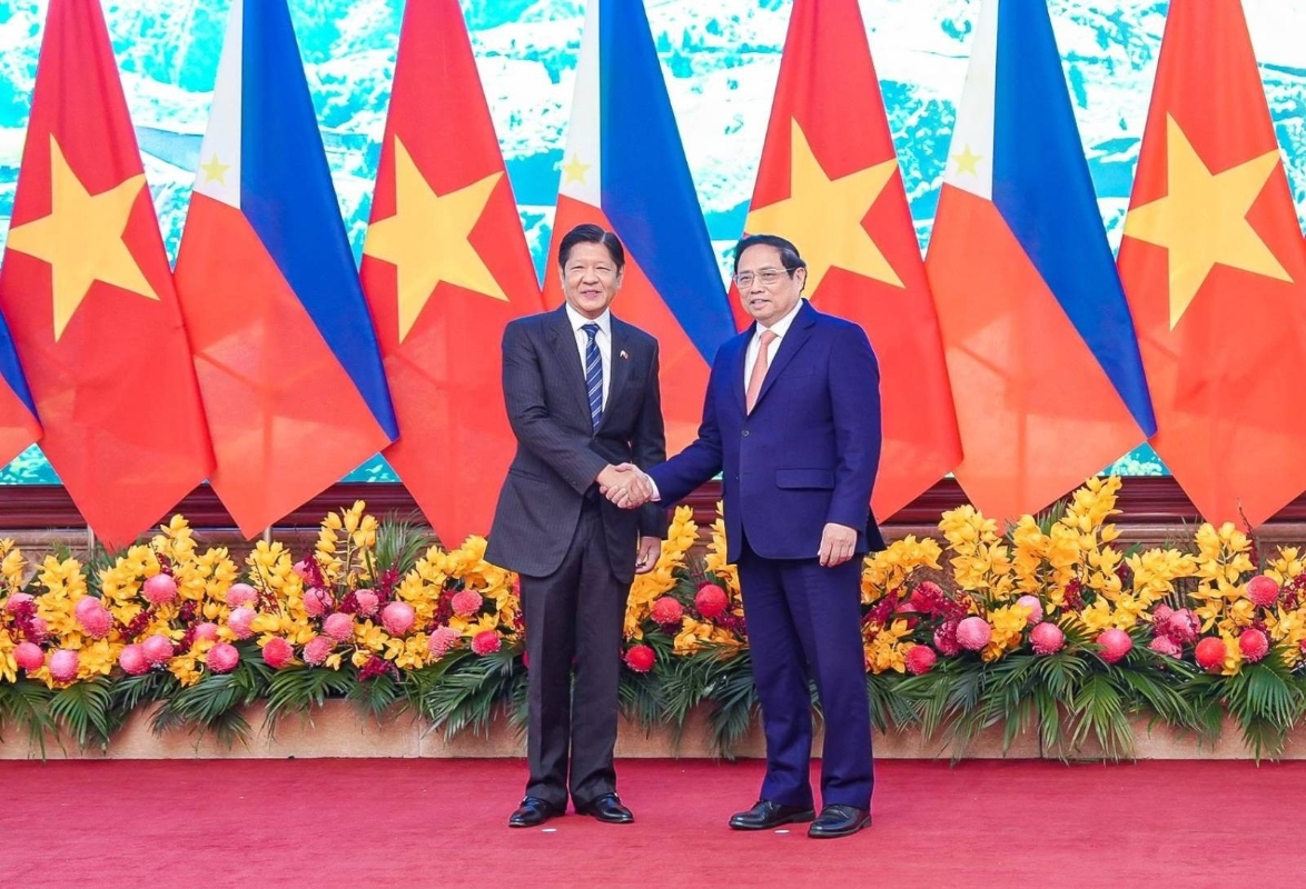 菲律賓總統馬科斯與越南總理范明政。圖自菲律賓總統辦公室官方網站 據法新社報道,正在對越南進行國事訪問的菲總統馬科斯1月30日與越南政府簽署兩項協議,同意設立溝通熱線,並成立聯合海岸警衛隊委員會來討論共同問題。路透社援引一名越南政府官員的話報道稱,這兩項安全諒解備忘錄涉及“預防南海(發生)事件”和“海岸警衛隊之間的‘海上合作’”。 據報道,馬科斯在與越南總理范明政的會談中表示,此次簽署的海事合作協議旨在構築兩國海岸警衛隊之間在能力建設、培訓、人員和船隻交流方面的全面夥伴關係,以提高雙方共同開展行動的能力。馬科斯在會談中也說,“南海仍是一個爭議點”。 菲總統辦公室的聲明說:“海上合作諒解備忘錄旨在加強雙方之間的理解、互信和信心。”不過,路透社稱,菲律賓和越南並未公布協議的細節,但此舉可能會“激怒中國”。報道還提到,河內和馬尼拉過去都曾與中國海警發生衝突,尤其是去年中菲之間爭端頻發,導致關係變得越發緊張。 另據越通社報道,1月30日中午,范明政與馬科斯共同主持了越菲兩國模範企業見面會。 見面會上,與會代表聽取了關於兩國經濟社會發展情況、近期兩國經營投資合作成果的介紹,新投資趨向,未來投資定向等。 馬科斯在見面會上發表講話時強調,菲越戰略夥伴關係需要進一步擴大到國家企業,尤其是創新、創意領域的企業,走向可持續發展,為兩國帶來切實利益,致力於地區和平、穩定、合作與發展。 范明政表示,兩國建立外交關係50年、建立戰略夥伴關係10年來,越菲兩國關係呈現良好發展勢頭,在許多領域取得重要成果;是推動兩國企業擴大投資、經營,促進投資和貿易合作的重要基礎和動力。(完) 【編輯:梅婉潼】