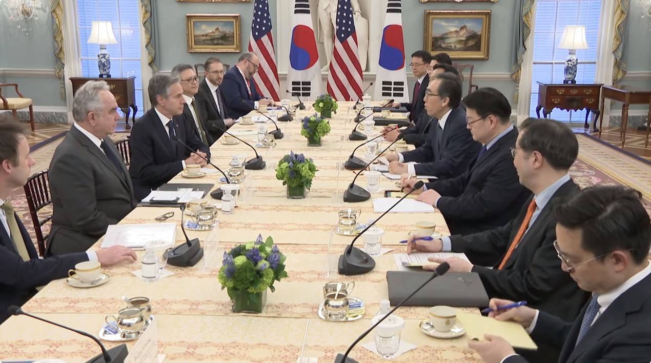 2月28日,美國國務卿布林肯與韓國外長趙兌烈在美國國務院大樓舉行會談。視頻截圖 據韓聯社29日消息,會談期問,雙方探討韓美和韓美日緊密合作應對朝鮮可能在今年4月韓國國會議員選舉、11月美國總統選舉之際升級威脅力度的方案。 據分析,鑒於朝鮮在歲末年初將韓朝關係重新定性為敵對國家關係,並提及可能舉行朝日首腦會談等,表現出通過接近日本“離間”韓日關係的跡象,預計雙方可能就此共同評估並討論應對方案。 據韓國外交部介紹,雙方商定進一步深化包括首腦級在內的高層交流和各層級戰略溝通,推動韓美核諮商小組(NCG)磋商提速,共同加強延伸威懾執行力。雙方還決定認真落實韓美日合作的跟進措施。雙方商定努力阻斷朝鮮通過各種非法手段籌集資金,並喚起國際社會對被朝綁架扣留人員、國軍俘虜、棄朝投韓者等問題的關注。 這是趙兌烈今年1月上任以來兩位外長首次舉行線下雙邊會談。雙方於上月通電話,本月22日借二十國集團外長會之機舉行了韓美日三方外長會談。 另外,布林肯正式發布下月將借在首爾舉行的第三屆民主峰會之機訪韓的消息。第三屆民主峰會將於3月18日至20日舉行,峰會首日將安排部長級會議和專家圓桌會議。(完) 【編輯:梅婉潼】