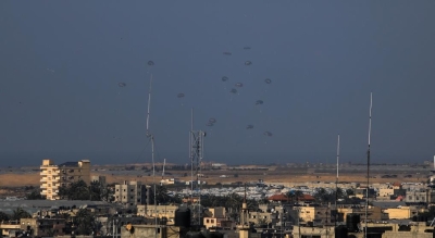 這是2月27日拍攝的向加沙地帶空投的救援物資。新華社圖片 哈馬斯在一份聲明稱,12人在下海打撈食品包裹時溺亡,另外6人在其他救援包裹落地時被踩踏致死。哈馬斯呼籲“立即停止”空投行動,稱空投是“無禮的、錯誤的、不適當的和無用的”。 據路透社報道,以色列政府正面臨著允許更多援助物資通過陸路進入加沙的壓力。25日,以方協助其他國家向加沙北部空投了159個一噸重的援助物資包裹。美國政府表示,兩架C-17運輸機25日在加沙北部空投了4.6萬份“野戰口糧”,英國政府則稱,一架A-400M運輸機空投了10噸飲用水,以及大米、食用油、面粉、罐頭食品和嬰兒配方奶粉等物資。 人道主義組織警告說,空投物資無法滿足加沙地帶不斷飆升的食品需求。 據法新社報道,26日,約旦、埃及、阿聯酋和德國的飛機再次向加沙空投援助物資,引發大量巴勒斯坦人爭搶。 另據聯合國消息稱,聯合國當地時間3月24日收到以色列方面通知,稱以方將不再批准任何聯合國巴勒斯坦難民機構(近東救濟工程處)運送食物的車隊進入加沙北部。 對此,近東救濟工程處主任專員菲利普·拉扎里尼24日在社交媒體上發文,稱這一決定“令人憤慨”,認為這是以方為了在加沙地帶北部出現人為饑荒期間,故意對救生援助運送而實施的阻礙行為。(完) 【編輯:馬華】