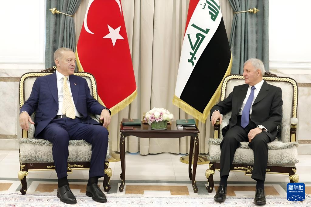 4月22日,伊拉克總統拉希德(右)在巴格達會見到訪的土耳其總統埃爾多安。圖自新華社 在會後舉行的聯合新聞發布會上,蘇達尼表示,伊土雙方將在戰略框架協議的基礎上設立安全、能源和經濟合作委員會,兩國已共同簽署超過24項涉及各領域和部門的諒解備忘錄。雙方在水資源方面簽署了旨在實施和提升兩河流域水資源管理、實現水資源配額公正的合作框架協議,有效期為十年。 路透社稱,伊拉克去年啟動了一項耗資170億美元的“發展之路”運輸走廊項目,旨在將該國打造成一個交通樞紐,連接石油資源豐富的伊拉克南部和土耳其北部。此外,伊拉克希望與土耳其達成一項協議,以從底格里斯河和幼發拉底河獲得更多水源。這兩條河流都發源於土耳其,是伊拉克主要的淡水來源。 在安全領域合作方面,蘇達尼指出,伊土兩國安全是一個不可分割的整體,雙方將共同應對威脅兩國安全的恐怖主義和武裝分子問題。他重申,伊拉克拒絕任何勢力利用伊拉克領土作為攻擊鄰國的跳板,反對任何一方侵犯伊拉克主權。 埃爾多安表示,伊拉克是與土耳其擁有共同歷史和文化聯繫、具有戰略價值的鄰國,土伊雙方將在相互尊重、睦鄰友好的基礎上為共同利益推動兩國關係向前發展。他同時強調,庫爾德工人黨及其附屬機構在伊拉克境內的存在應盡快結束,並表示支持建立以1967年邊界為基礎、以東耶路撒冷為首都、享有完全主權、獨立的巴勒斯坦國,土伊雙方正致力於制止加沙地帶的流血衝突繼續發生。 當地時間22日,埃爾多安抵達伊拉克首都巴格達開始對該國進行正式訪問,這是埃爾多安時隔近13年首次正式訪問伊拉克。(完) 【編輯:梅婉潼】