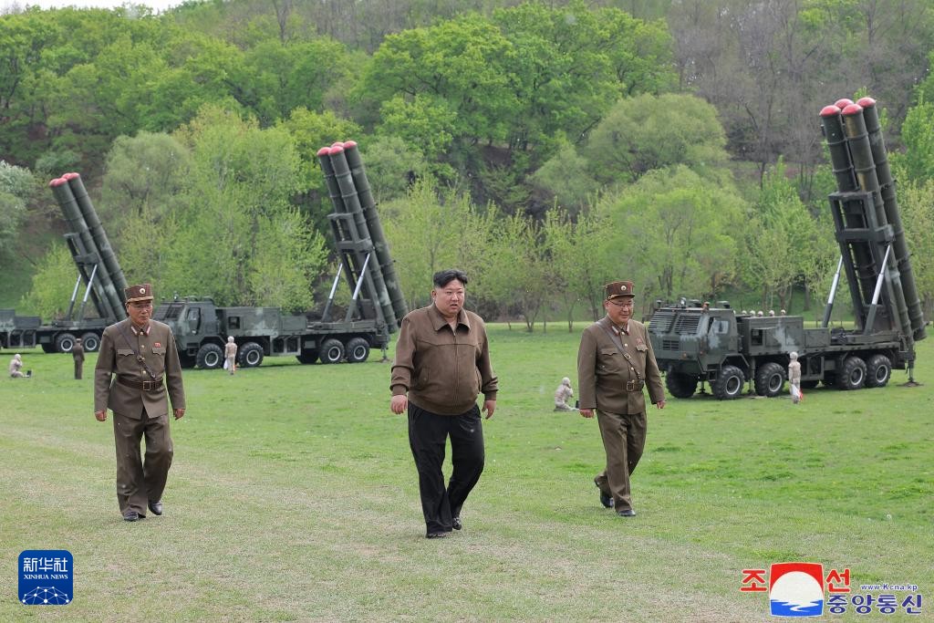 這張朝中社提供的照片顯示的是4月22日,朝鮮勞動黨總書記、國務委員長金正恩指導超大型火箭炮兵部隊進行核反擊模擬演習。圖源:新華社/朝中社 朝中社報道,演習期間進行了搭載核模擬戰鬥部的超大型火箭炮齊射,擊中352公里以外的島嶼目標。 報道援引金正恩的話說,朝鮮擴大戰術核攻擊運用空間、實現多路轉換的核武力建設構想由此變成現實。 金正恩同時強調,要不斷提高核武力在戰爭遏制戰略和戰爭執行戰略中的中樞作用,並朝此方向完善戰法及核武力經常性備戰態勢。 另據朝鮮勞動黨機關報《勞動新聞》報道,韓美正在韓國進行的聯合編隊軍綜合演習(KFT)和18日舉行的聯合空中滲透演習等,稱這些演習是敵對勢力試圖以軍事力量向朝鮮發出挑釁。(完) 【編輯:梅婉潼】