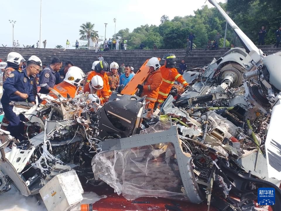 4月23日,救援人員在馬來西亞霹靂州的直升機墜毀現場救援。新華社發(馬來西亞消防拯救局供圖) 根據馬來西亞皇家海軍的聲明,事故發生在霹靂州一個海軍基地,兩架直升機當日上午在進行飛行表演訓練時相撞墜毀。事故中一架直升機上有7人,另一架有3人。10名遇難者已被送往海軍基地醫院進行身份辨識。 馬來西亞國防部長穆罕默德·哈立德·努爾丁表示,將成立調查委員會徹查事故原因。 據當地媒體報道,馬來西亞皇家海軍為慶祝成立60周年舉行飛行演習綵排,23日上午9時03分,霹靂州紅土坎空軍基地出動7架直升機,其中一架直升機飛出後突然偏離航線,向右撞上另一架直升機尾翼,空中瞬間冒出黑煙,其中一架直升機部分機身在空中解體,殘骸碎片在高空四濺,隨後兩機分別墜毀於基地體育館及其游泳池。 消息稱,2架失事直升機型號分別為HOM(M503-3)和Fennec(M502-6),其中HOM載有7名軍人,Fennec則載有3人。(完) 【編輯:梅婉潼】