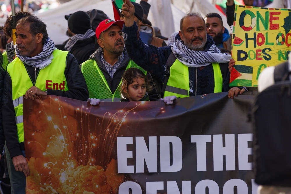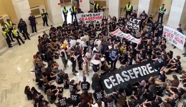 1月13日,在美國首都華盛頓,人們參加聲援巴勒斯坦的集會游行活動。新華社圖片 當天,反以抗議者在華盛頓哥倫比亞特區街頭遊行,抗議美國對以軍的支持。一行人穿過卡洛拉馬公園,前往白宮記者晚宴的舉辦地希爾頓酒店。許多抗議者頭戴頭巾,揮舞巴勒斯坦國旗,或舉著為加沙遇難者哀悼的標語。 現場視頻顯示,成群結隊的人敲著鼓,高喊“可恥”。抗議者表示,“美國媒體延續著反巴勒斯坦的叙事,無視以色列戰爭罪行。記者晚宴只不過是對美政府行動的慶祝和認可,並不是新聞報道,這是共謀。” 此外,抗議活動發生之際,全美各地反以色列示威活動激增,許多大學舉行了營地抗議活動。美國東北大學、亞利桑那州立大學和印第安納大學伯明頓分校有近200名抗議者遭到逮捕。(完) 【編輯:馬華】