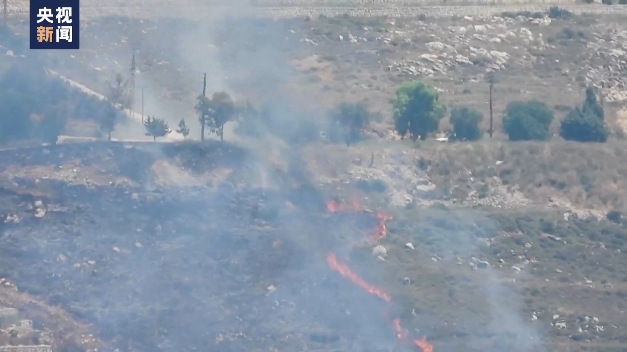 黎以雙方交火,引發黎以境內大火。央視新聞截圖。 此外,以軍當天也對黎巴嫩南部阿爾馬沙阿卜等地以及黎巴嫩東部貝卡谷地的襲擊,在當地引發大火。火勢蔓延至居民區。當地政府及民防部門隨即展開撲救工作。