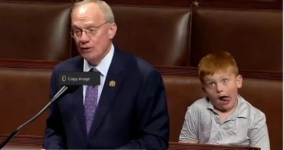 美議員國會上發言 其兒子背後做鬼臉搶鏡分享到: