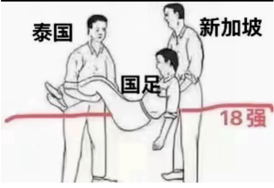 網上流傳將泰國、新加坡、國足都給形象化的圖片。網上截圖。 明明國足晉級了,是個振奮人心的好消息,可在各大媒體的報導裡,晉級前面總要加上“幸運”倆字,仿佛在說,這和實力關係不大。 平心而論,國足能進入18強,中韓一戰與他們自身的努力也不是不無關係,要知道,韓國隊本就是強隊,國足還在客場,能打成0比1小負一球已經很不容易了。最起碼,國足學會了拼。