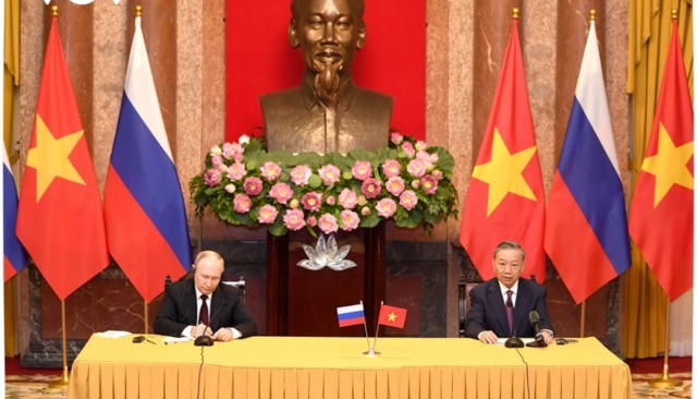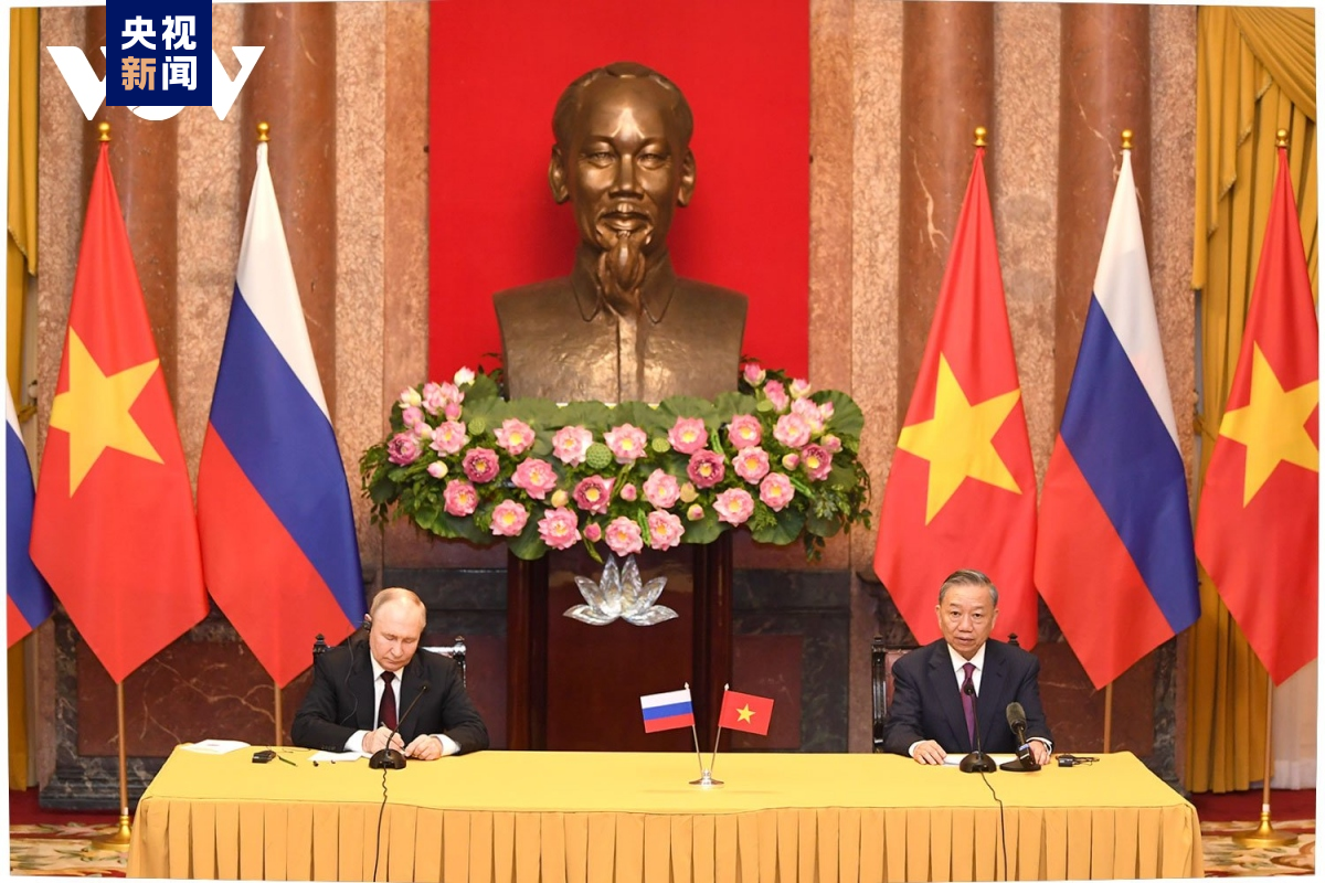 俄羅斯總統普京與越南國家主席蘇林。圖自央視新聞 20日中午,越南國家主席蘇林在主席府用最高規格的國家禮儀歡迎普京到訪。 歡迎儀式結束後,兩國領導人舉行了會談,評價兩國近期的合作成果,並提出未來的合作方向。 據報道,普京在聯合記者會上表示,除了雙邊關係,他與蘇林還討論了地區和國際問題,雙方在很大程度上立場一致,兩國捍衛國際法至上原則和主權原則,在發展符拉迪沃斯托克港(海參崴港)—胡志明市運輸走廊方面有合作前景,俄羅斯企業作為共同投資者和供應商已經準備好展開液化天然氣項目。 蘇林表示,越南始終將俄羅斯視為外交政策的優先事項,主張在亞太地區建立平等而且不可分割的安全與合作架構,兩國會加強國防與安全合作,雙方商定不加入反對對方的聯盟,並會加強在清潔能源方面的合作,雙方同意共同尋求國際局勢所引發問題的解決方案。 越通社報道稱,普京此訪是在越南與俄羅斯關係呈現良好、快速、全面發展勢頭的背景下進行的,是符合地區和世界的和平、合作與發展利益的平等互利合作典範。 報道稱,普京此次對越南進行國事訪問意義重大,進一步深化越俄各領域全面戰略夥伴關係,特別是在兩國正在努力推動《2030年全面戰略夥伴關係聯合聲明》落地實施的背景下。(完) 【編輯:梅婉潼】