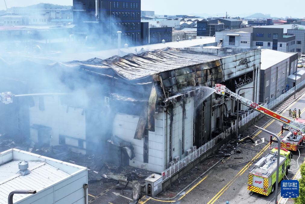 6月24日,消防員在韓國京畿道華城市的電池工廠火災現場滅火。新華社圖片 明火於當天下午3時10分許得到基本控制。隨即消防部門開始在火災現場搜尋失蹤者,發現20餘具被燒焦遺體,疑似為火災發生當時失聯人員。 據消防部門稍早前發布的數據,此次火災共導致23人失蹤,其中20人為外國人、2人為韓國人、1人國籍不祥。由於搜尋工作尚未完全結束,確切的傷亡人數有待進一步核實。 24日上午10時31分,ARICELL位於京畿道華城市西新面工廠的第三樓發生火災。該廠區共有11棟樓,此次火災發生在第三棟樓的第二層。當時第三棟樓共有67名員工作業,1層和2層分別有15人和52人。 據報道,事發樓裡存放有3.5萬多個鋰電池成品。考慮到鋰是有害化學物質,消防部門迅速發布2級響應,並出動消防員等145人和50台設備開展了滅火工作。(完) 【編輯:馬華】