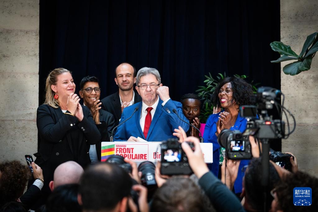 7月7日,法國極左翼政黨“不屈法國”領導人梅朗雄(中)出席在巴黎舉行的選後集會。新華社圖片 “一個月前,新人民陣線還不存在。現在,它在法國國民議會中贏得了最多的席位,法國下一任總理也可能從中誕生。”美國有線電視新聞網(CNN)7日刊文稱。 左翼聯盟將提名誰引發外界關注。“左翼聯盟有很多總理人選。但沒有一個能讓所有人滿意。”《政治報·歐洲版》根據左翼聯盟的陣營劃分提出了4位潛在人選:72歲的“不屈的法蘭西”黨領導人讓-呂克·梅朗雄、48歲的法國國民議會議員弗朗索瓦·拉芬(François Ruffin)、48歲的即將離任的法國社會黨議會黨團主席鮑里斯·瓦勞德(Boris Vallaud),以及55歲的前法國工人民主聯合會秘書長洛朗·貝爾熱(Laurent Berger)。 法國國民議會選舉當地時間7日舉行第二輪投票。當地時間7日20時(北京時間8日凌晨2時)第二輪投票結束。左翼政黨聯盟“新人民陣線”得票率領先。根據最新的出口民調顯示,極右翼政黨國民聯盟及盟友獲得約115至150個席位,左翼政黨聯盟“新人民陣線”獲得約175至205個席位,但未獲得絕對多數席位。而執政黨復興黨及其中間派聯盟“在一起”獲得約150至175個席位。 據悉,當地時間7日晚,法國總理阿塔爾在國民議會選舉第二輪投票結束後表示,將於8日向總統馬克龍請辭。(完) 【編輯:馬華】