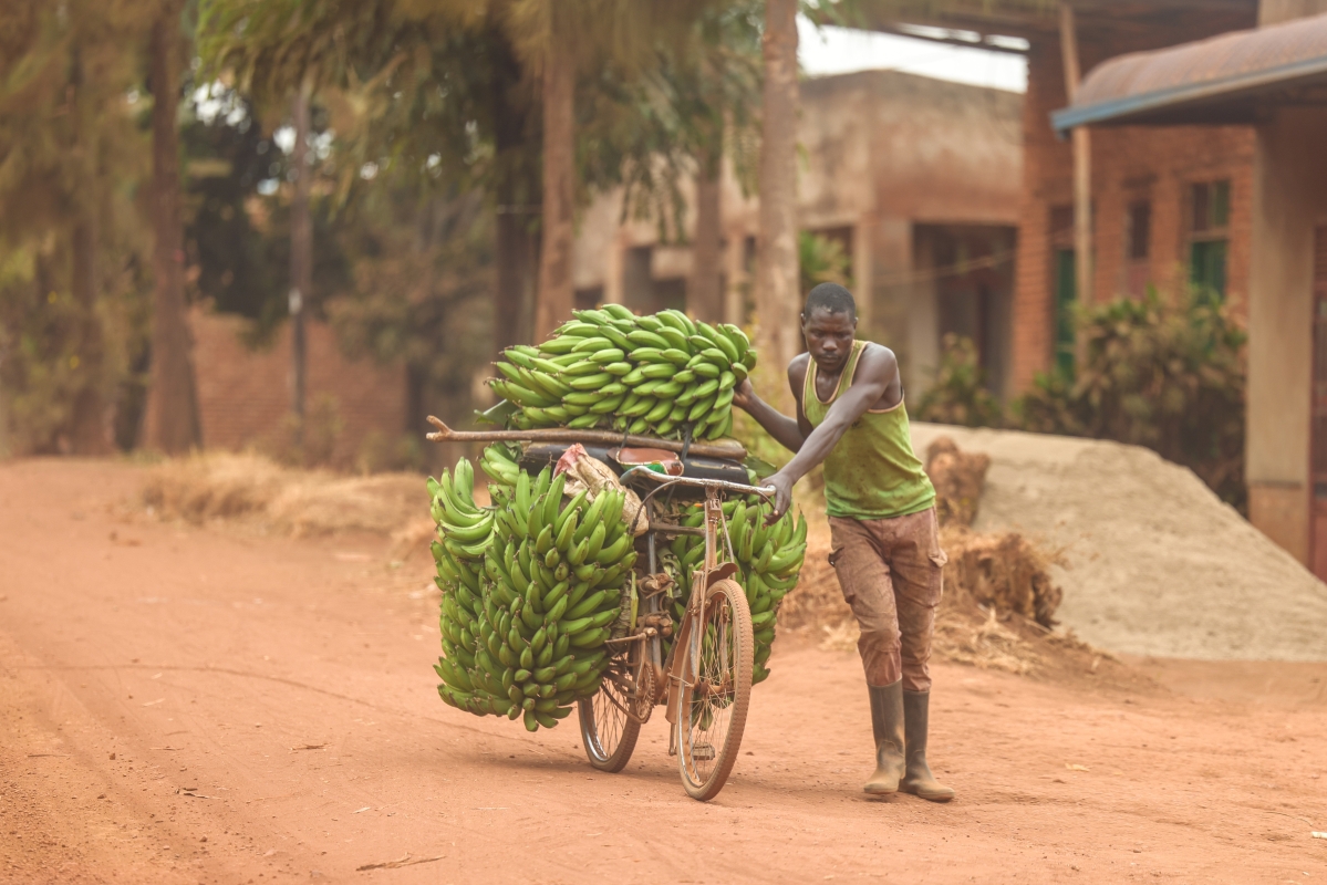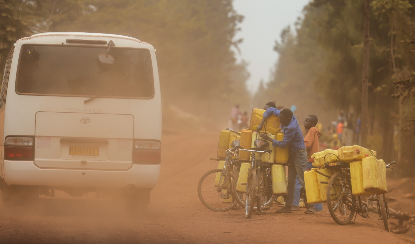 香港新聞網7月20日盧旺達電(記者曹文毓)盧旺達共和國是中非東部主權國家,人口主要居住在農村地區,以年輕人為主,密度在非洲國家中位居前列。中通社記者近日實地探訪盧旺達首都基加利一村落,發現當地生活方式趨於原始,大量房屋用泥磚建造,隱藏在田地之間。村民通常使用黃色水桶集中來到一處河流地點接取所有生活用水,屋內也並未設有廁所或浴室。道路中央放眼望去紅土一片,由於長旱季,塵土飛揚,甚至染紅了大部分綠葉;道路兩旁多為田地,種植大量香蕉、牛油果等作物,因此當地食物亦多選用香蕉直接烹飪。由於村落內大量房屋尚未通電,因此村民通常日落而息。