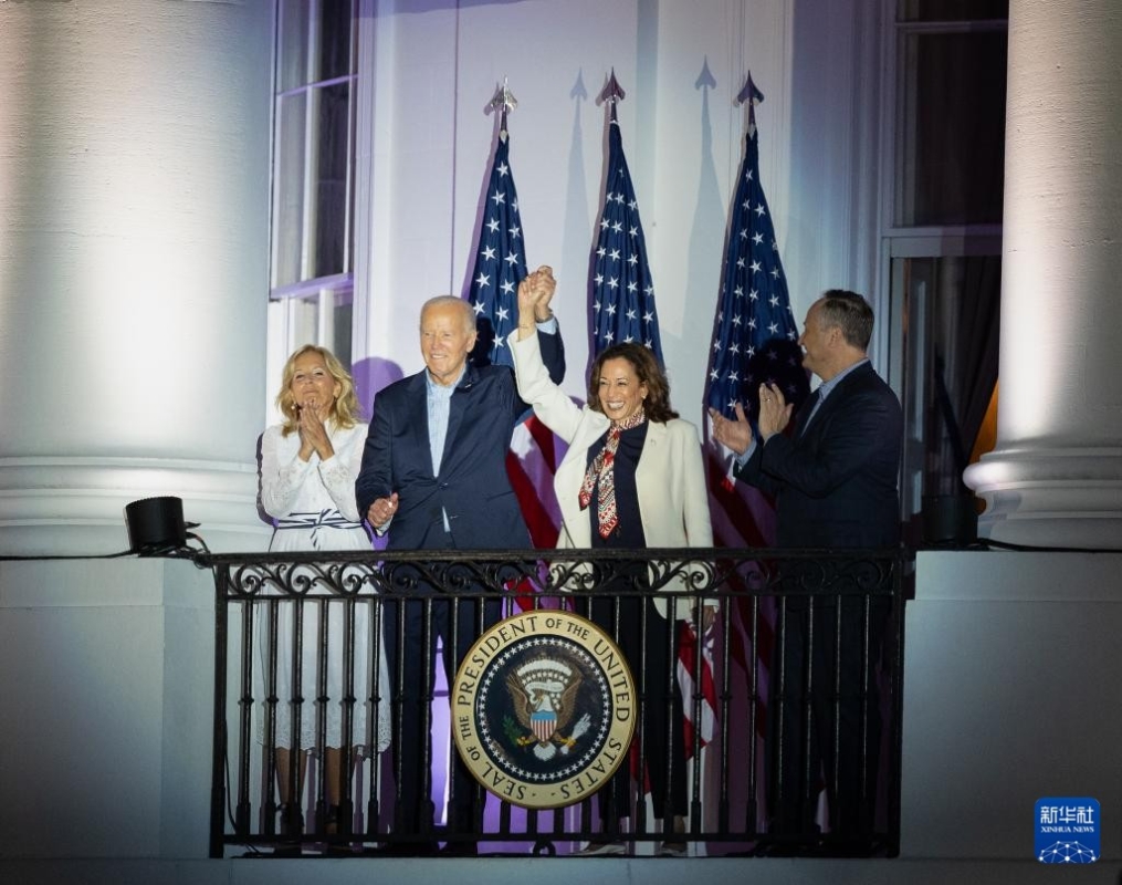 這是7月4日在美國華盛頓白宮拍攝的美國總統拜登(左二)和副總統哈里斯(右二)。新華社圖片 路透社報道,競選發言人當日說,自拜登21日下午支持哈里斯以來,美國民眾向她的競選活動捐贈4960萬美元。 另據路透社引述消息人士透露,民主黨50個州的主席21日召開電話會議,所有主席都“全力支持”哈里斯成為黨內新的總統候選人。 拜登21日宣布退出2024年美國總統競選,放棄尋求連任。他同時支持哈里斯接棒獲得黨內提名,競選總統。對於拜登點名接棒,哈里斯說,她很榮幸獲得拜登的支持,她的目標是贏得提名,並竭盡全力團結黨和國家,擊敗共和黨前總統特朗普。 哈里斯現年59歲,是美國第一位女性、黑人和亞裔副總統。她在民主黨基本盤的一些關鍵州很受歡迎,可以凝聚選民的支持。民主黨非常依賴包括黑人婦女在內的有色人種投票率,因此,如果放棄提名哈里斯,可能會給民主黨帶來政治風險。(完) 【編輯:馬華】
