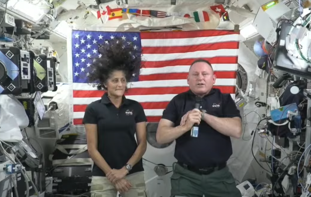 滯留太空的美國宇航員威廉姆斯(左)和威爾莫爾。視頻截圖 6月6日,美國宇航員巴里·威爾莫爾和蘇尼·威廉姆斯乘坐波音公司的“星際客機”飛船飛抵國際空間站,原定於6月14日返回地球,但由於飛船推進器故障和氦氣洩漏等問題,返航時間一再推遲。 8月7日,NASA曾表示,如果“星際客機”仍然無法安全返回地球,那麼兩名宇航員將在2025年2月搭乘SpaceX的“龍”飛船返回地球。(完) 【編輯:李雪萍】
