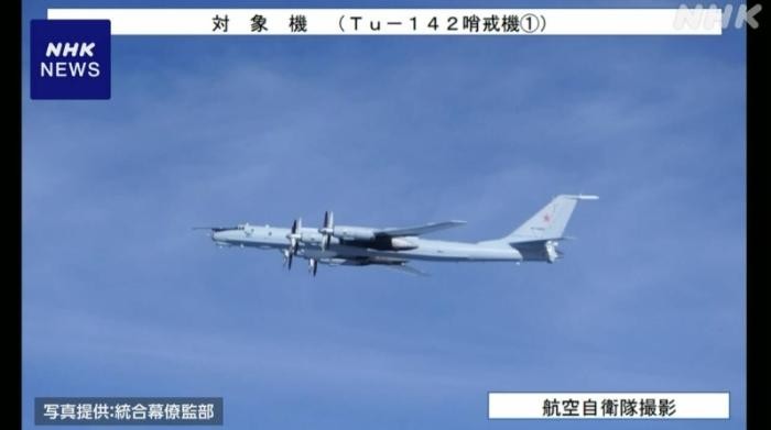 圖片來源:日本廣播協會(NHK)報道截圖 報道稱,這是日本防衛省自2019年6月20日確認並發表俄軍戰機環繞日本列島飛行以來,俄軍機時隔5年再次以環繞日本列島的方式飛行。 據日本放送協會(NHK)報道,日本防衛省消息稱,俄軍2架戰機當天從島根縣隱岐諸島近海,經對馬海峽南下,然後通過沖繩本島與宮古島之間,進入太平洋,在北方四島上空飛行後,從宗谷海峽飛往了俄羅斯方向。 消息稱,日本自衛隊戰機雖然於期間緊急升空應對,但據稱俄軍戰機並未侵犯日本領空。(完) 【編輯:林曉惠】