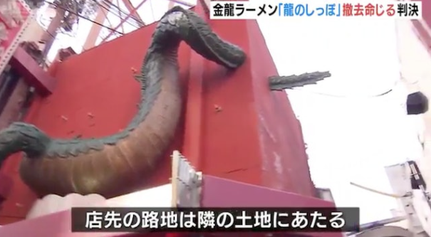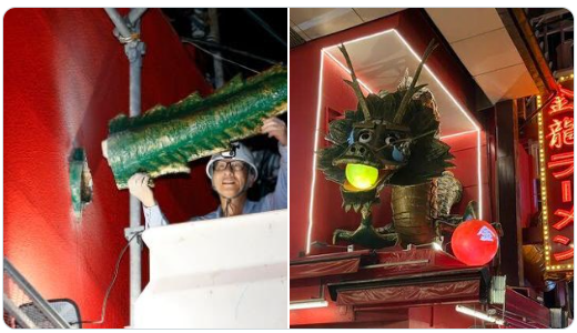 日本大阪金龍拉麵店金龍未被截尾時原貌。網上截圖。 武田提到,道頓堀當時舉辦過能登半島地震募捐活動,獲金龍拉麵、商店街及大阪民眾支持。而他看到有關金龍拉麵的新聞時,自己就想是否做到些甚麼作為報恩。