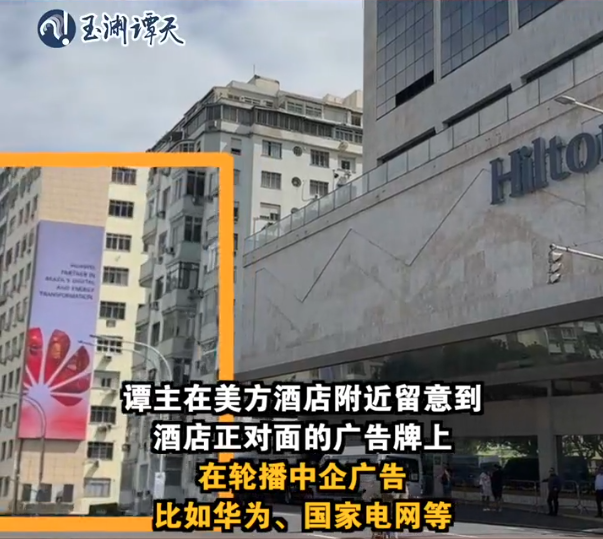 G20趣聞:拜登下榻酒店對面 中企廣告輪播“搶鏡”香港新聞網11月20日電 在巴西舉行的G20峰會期間,中國中央廣播電視總台旗下的新媒體賬號“玉淵譚天”發佈視頻表示,在美方下榻酒店外留意到,酒店對面的廣告牌正輪播華為、國家電網等中企廣告。視頻稱,此前美國官員曾“警告”巴西注意和中國合作的風險,然而美方此行只要打開窗,就能在巴西看到一個反對貿易保護主義、推動自由貿易的市場。