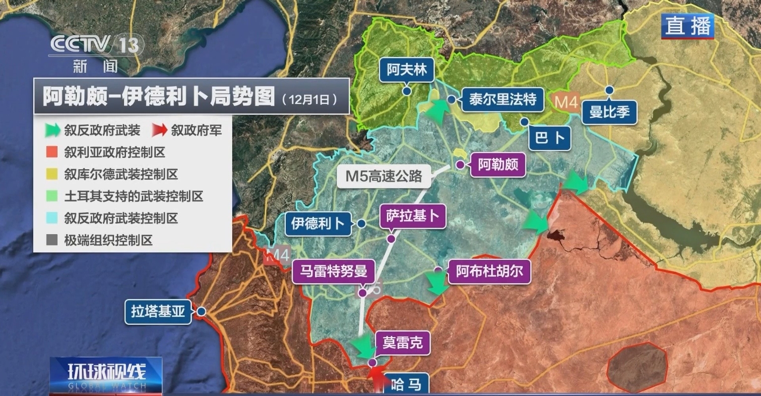 敘利亞西北部局勢圖。央視報道截圖 2011年敘利亞內戰爆發,敘局勢持續動蕩。在這一過程中,多支反政府武裝興起,既相互爭奪,又對敘政府發動攻擊,其中一些力量還得到外部勢力支持,包括美國等國家。“伊斯蘭國”等極端組織也乘虛而入,在敘利亞不斷擴大地盤。敘政府雖得到伊朗、黎巴嫩真主黨支持,但仍面臨巨大壓力,直到俄羅斯2015年9月應敘政府請求出兵介入,才逐漸將局勢穩定下來。 然而,今年11月27日,在以色列、黎巴嫩真主黨停火協議生效當天,位於以黎東部的敘利亞局勢突然緊張。自11月27日起,敘政府軍與反對派武裝及極端組織持續在敘西北部地區發生大規模交火。僅在4天內,反對派武裝便進入了該國第二大城市阿勒頗的大部分地區。這是自2016年政府軍奪回該市以來,反對派武裝首次攻入阿勒頗。分析普遍認為,這可能打破自2020年停火協議以來敘利亞衝突“基本凍結”的狀態。 有分析指出,此次敘利亞衝突再起與地區和國際局勢的變化有很大關係。 上海外國語大學中東研究所教授范鴻達向香港中通社表示,過去幾年,敘利亞的衝突不斷,除了該國內部各派別以外,還有外部勢力。比如俄羅斯和伊朗支持現有的敘利亞政府軍,也就是阿薩德政權。而反對派武裝中有土耳其支持的,也有美國支持的。這些反政府力量,並不是很強大,因為從2011年敘利亞內戰爆發以後,雖然美國和西方國家給了他們很多幫助,但反政府力量始終沒有形成氣候。 范鴻達指出,現在的情況就是在既有矛盾的基礎上進行了升級。其國際背景是以色列把哈馬斯的力量基本上消滅殆盡,黎巴嫩真主黨的力量也遭受嚴重損失。敘利亞反對派武裝和背後的支持者認為,阿薩德政權目前處於一個比較微妙、薄弱的時候,因為它最強大的兩個支持者:俄羅斯正處於烏克蘭戰爭中,無法脫身;而伊朗領導的所謂抵抗陣線,不管是哈馬斯還是真主黨,甚至胡塞武裝都遭受重創。所以在這種情況下,敘利亞反政府武裝認為,政府軍現在正是孤立無援的狀態,是發動進攻的最好時機。 美國《華爾街日報》認為,此次反對派武裝能在戰場上快速取得進展,是因為伊朗和黎巴嫩真主黨的實力在巴以和黎以衝突中被削弱,無法給予敘政府更多支持。有評論認為,以色列轟炸敘利亞和黎巴嫩之間的陸路通道,切斷了黎真主黨同敘政府和伊朗的聯繫。另有分析人士表示,俄烏衝突延宕近三年,俄羅斯深陷俄烏戰場,對敘政府的軍事支持有減少。 另外,敘利亞衝突再起,既受到巴以、黎以衝突等中東其他地區局勢的影響,也會反過來對其產生影響。以色列《耶路撒冷郵報》稱,在哈馬斯和黎巴嫩真主黨被嚴重削弱後,另一個“親伊朗勢力”敘利亞政府遭受重創,顯然是以色列所樂見的。(完) 【編輯:淩玉輝】