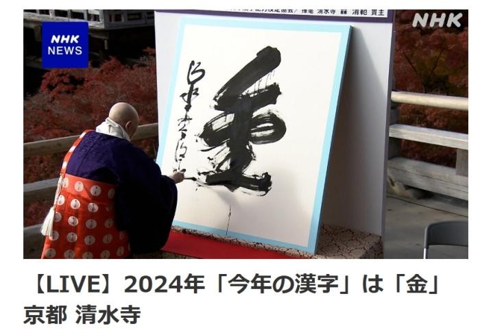 香港新聞網12月12日電  當地時間12日下午,位於日本京都的清水寺公佈“金”字為2024年日本年度漢字。