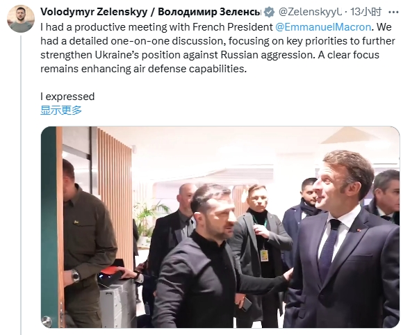 澤連斯基X賬號截圖 澤連斯基交給馬克龍一份前線烏軍所需武器裝備清單,並請法國協助加強烏克蘭防空和遠程打擊能力。澤連斯基說,自俄烏衝突以來,法國提供了約50億歐元的防務支援並參與訓練烏軍計劃,烏方期待法方啟動對第二支烏克蘭戰略預備旅的訓練。 烏克蘭國防部長烏梅羅夫18日晚在社交媒體發文說,他當天在基輔會見了到訪的英國國防大臣約翰·希利。雙方明確了接下來防務合作的優先方向,其中包括強化烏防空能力、確保火炮彈藥不間斷供應、開展防空武器等防禦武器聯合生產、訓練和裝備烏新軍等。 當天,希利在接受烏克蘭國家通訊社採訪時說,英國正在制定新的援助計劃,英國明年將繼續幫助烏克蘭訓練軍隊。 另外,比利時《晚報》18日援引比利時國防部長盧迪文·德東德的話報道,比利時將無法按照先前承諾的在今年底之前交付給烏克蘭F-16戰機。 報道稱,部長將交付延遲歸咎於缺乏訓練有素的烏飛行員和備件短缺。 報道還指出,美國向比利時空軍交付新型F-35戰機的時間大大推遲,而這些戰機本應取代過時的F-16戰機。(完) 【編輯:淩玉輝】