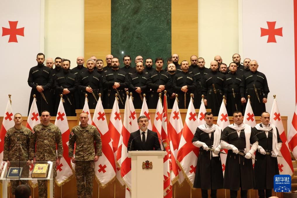 12月29日,格魯吉亞當選總統米哈伊爾·卡韋拉什維利(前中)在首都第比利斯舉行的就職典禮上講話。新華社發(格魯吉亞議會辦公廳供圖) 選舉人團成員,政府、憲法機構代表及卡韋拉什維利的家人出席了就職典禮。 12月14日,由執政的“格魯吉亞夢想黨”提名的卡韋拉什維利在選舉中勝出,當選總統。根據修訂後的格魯吉亞憲法,此次格總統首次從選民直選改為由國家議會議員和地方議會議員共300人組成的選舉人團選出,任期5年。 卡韋拉什維利於12月29日就職,正式接替於12月16日屆滿的現任總統祖拉比什維利。 卡韋拉什維利現年53歲,曾是一名職業足球運動員。他在退役後從政,2016年以“格魯吉亞夢想黨”成員身份首次當選格議會議員。在今年10月26日舉行的議會選舉中,他第三次當選格議會議員。(完) 【編輯:梅婉潼】