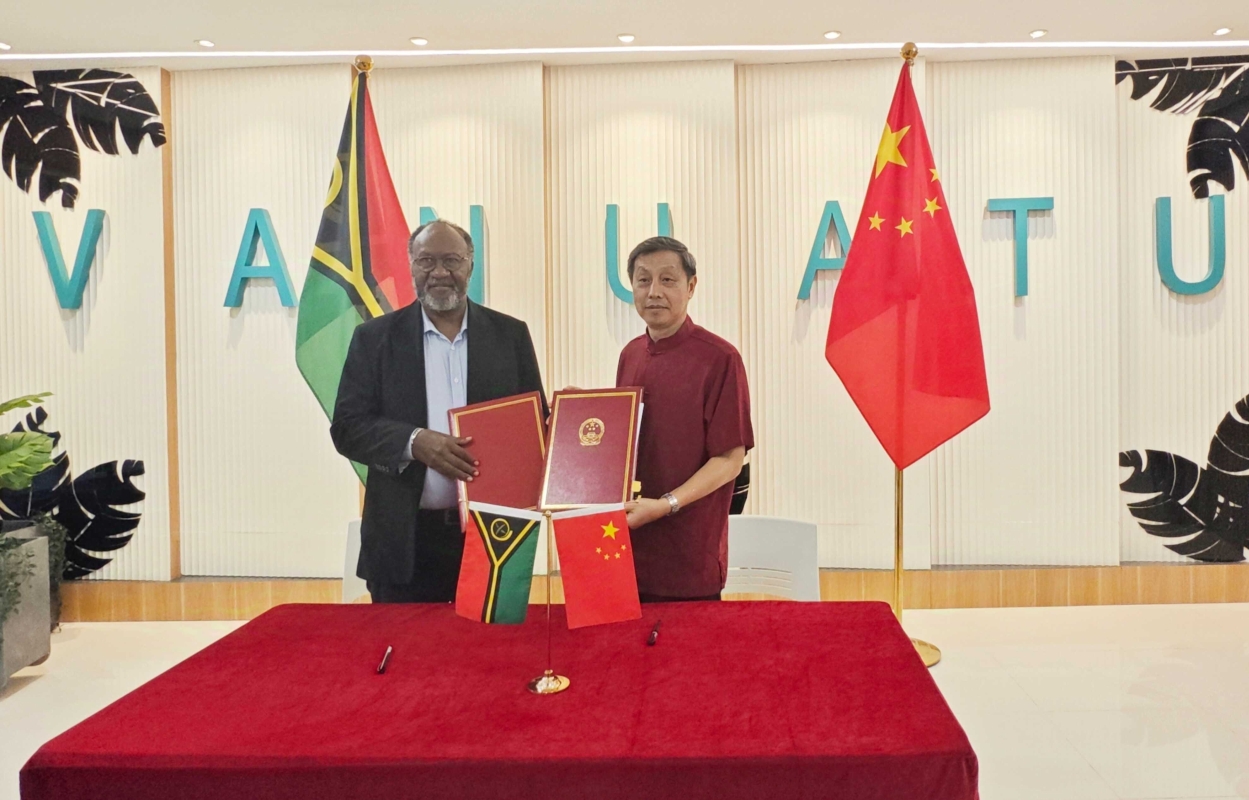 中國駐瓦努阿圖大使李名剛同瓦努阿圖看守政府總理薩爾維簽署了物資交接換文。(圖源:中國駐瓦努阿圖共和國大使館) 據了解,本次包機運載35噸物資,包括帳篷、摺叠床、淨水設備、應急食品、醫療用品等。 南太平洋島國瓦努阿圖附近海域2024年12月17日發生7.3級地震,造成至少14人喪生,200多人受傷,城市基礎設施受損嚴重。(完) 【編輯:張麗欣】