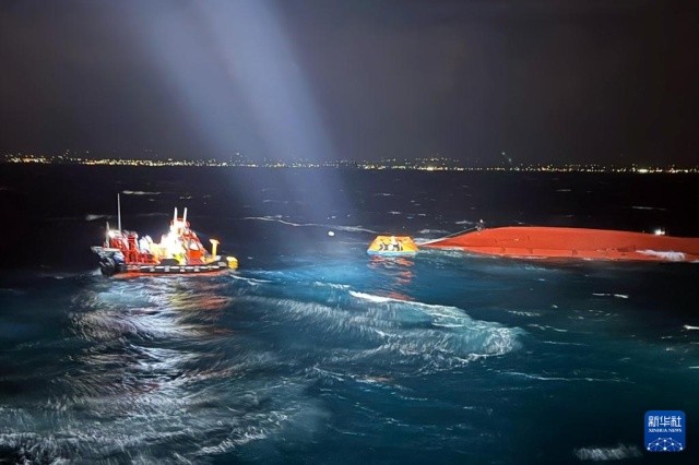 一艘漁船在韓濟州島附近海域傾覆。新華社圖片 據韓聯社消息,韓國濟州地方海洋警察廳當天通報,當地時間19時56分左右,接到了一艘載有10人的33噸級韓國籍漁船發出的緊急求救信號。該漁船在濟州西歸浦市西南12公里海域傾覆,海警趕到現場後救出5人,目前正在搜索其餘5名船員。 根據船舶進出港管理系統,這艘漁船上共載有7名韓國人和3名外國人。 據悉,事發海域已發布風浪預警,風速為每秒18至20米,出現3米的大浪。(完) 【編輯:淩玉輝】