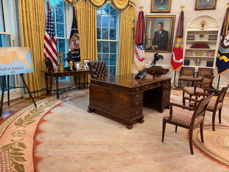 香港新聞網2月21日電 美國富豪特斯拉首席執行官馬斯克的四歲兒子上周在美國白宮橢圓形辦公室亮相,吸引了眾人關注。然而,有報道稱他可能在“堅毅桌”(Resolute Desk)上留下了鼻屎,導致美國總統特朗普20日決定將這張桌子送去“維修”。 特朗普20日在他的社交媒體“真實社群”(Truth Social)帳號上發布了一張新橢圓形辦公室布置的照片並寫道,“一位總統在當選後,可以從七張桌子中選一張。”