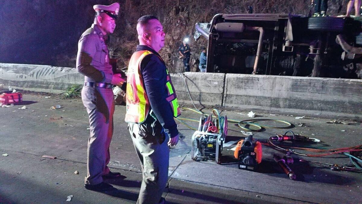 救援人員趕到現場。央視報道配圖 事件發生於當地時間淩晨4時左右,一輛載有教育考察團的旅遊巴士正沿著高速公路行駛。當車輛行駛至巴真府的一段下坡路段時,不幸發生翻車事故。旅遊巴士最終橫臥在路邊的山坡上,車身幾乎完全損毀。 事故發生後,所有傷者已被緊急送往附近醫院接受治療。救援人員迅速趕到現場進行救助,並將傷者疏散至安全地帶。 目前,相關部門正在對事故原因展開詳細調查。初步信息顯示,事故可能與路況及駕駛條件有關,但具體原因仍有待進一步確認。(完) 【編輯:淩玉輝】